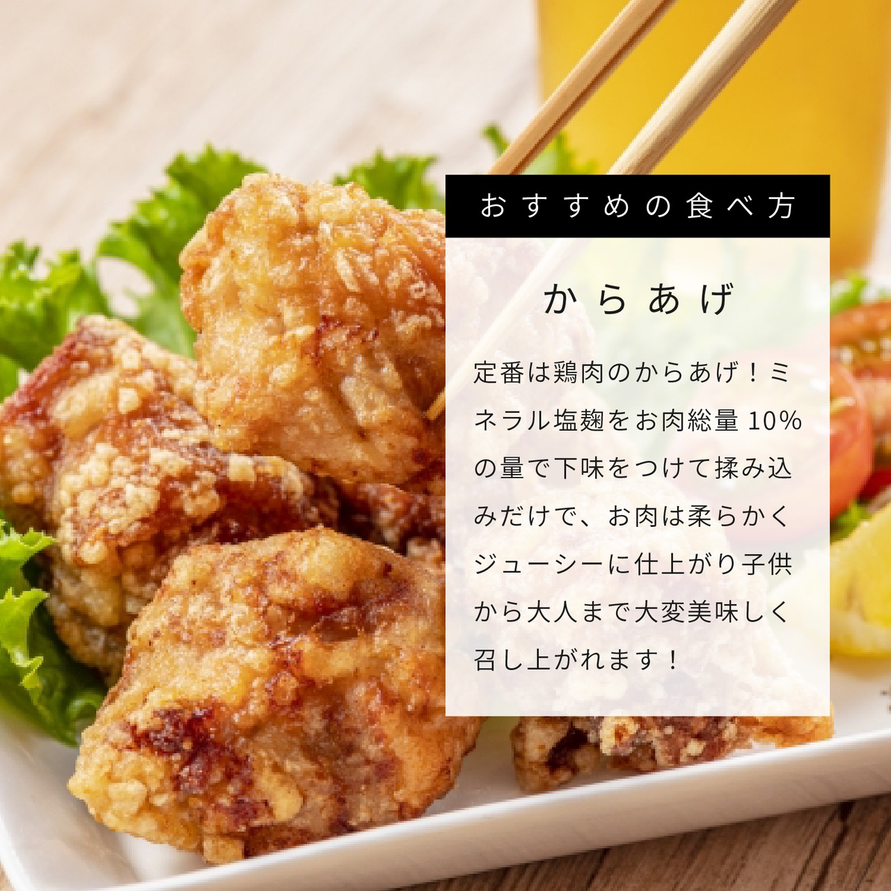 発酵食品は、美肌や疲労回復など様々な健康効果の他、食材を柔らかくする効果があります。食塩の代わりに使うと減塩効果もあるため、むくみが気になる方へもおすすめの商品です。