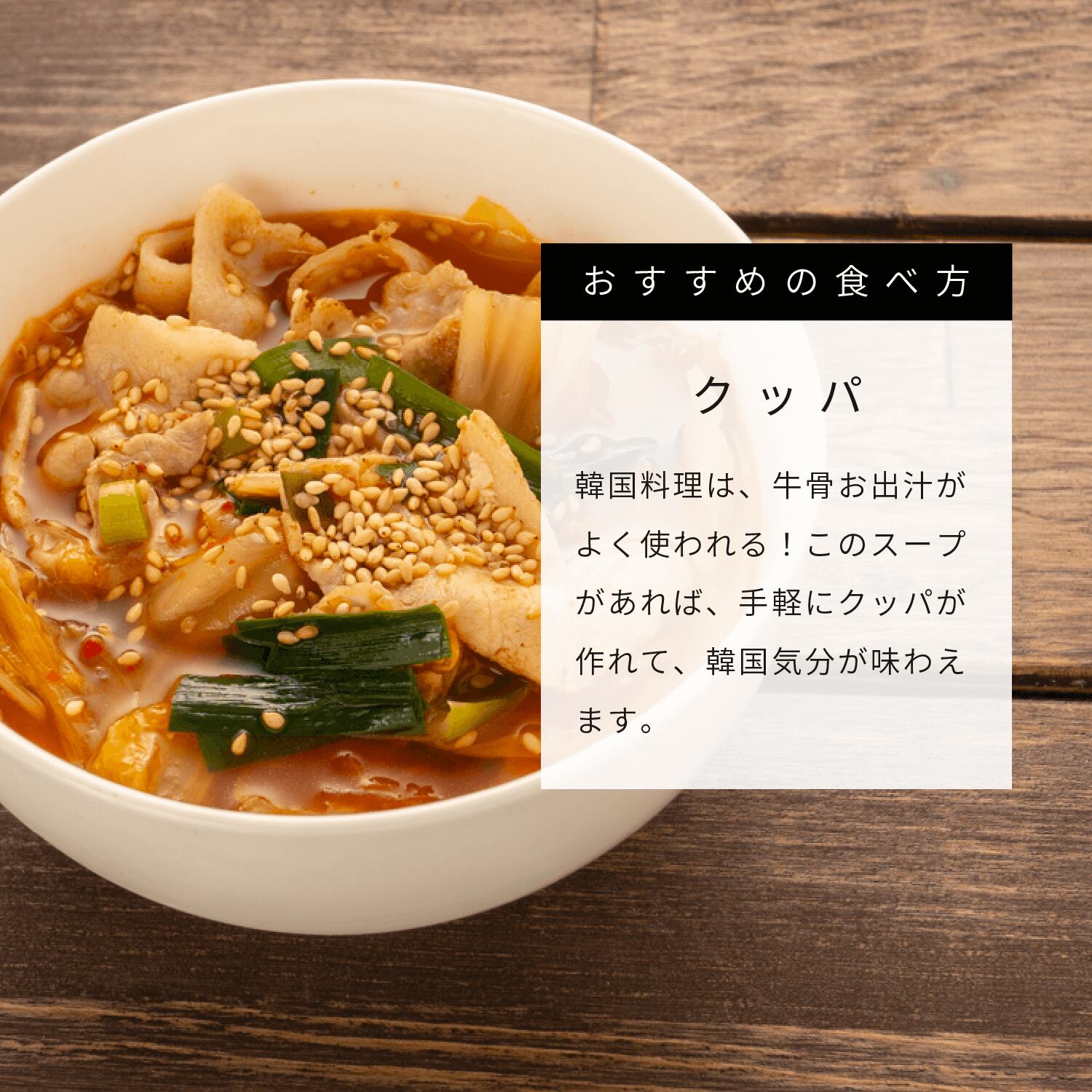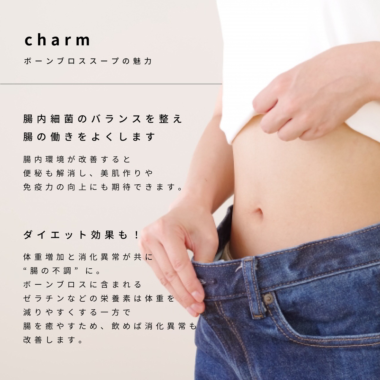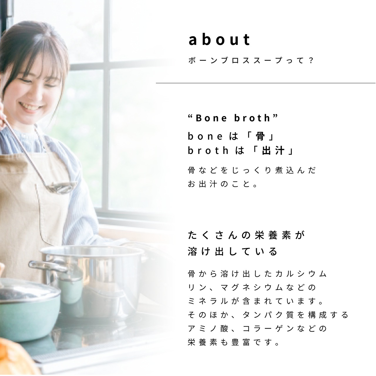 血抜きした牛骨を3日間コトコト煮込むことで、骨髄に含まれるビタミンやミネラル、アミノ酸やカルシウムなどの豊富な栄養素がスープに溶け出して、不足しがちな栄養をこのスープで補うと同時に、美容効果や腸活効果も期待できます。